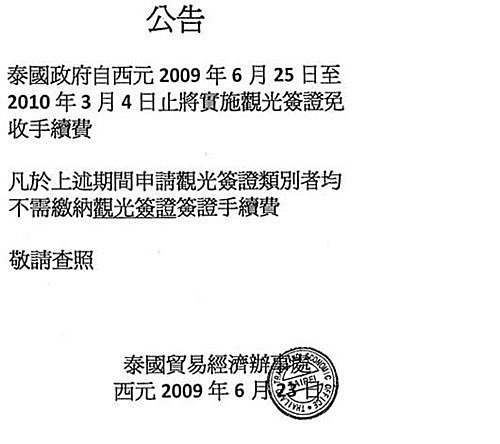 泰國簽證自2009年6月25日起~2010年3月4日...