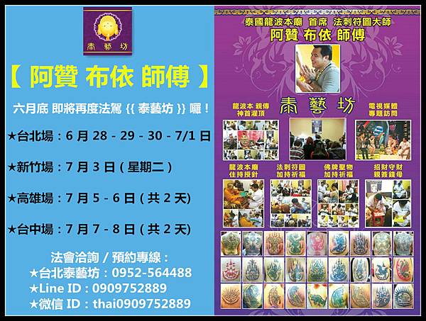 💥 《 下星期四 6/28 日 》 大家最喜愛的【 阿贊布依 師傅 】 就要法駕 {{ 泰藝坊 }} 囉 ! ! !